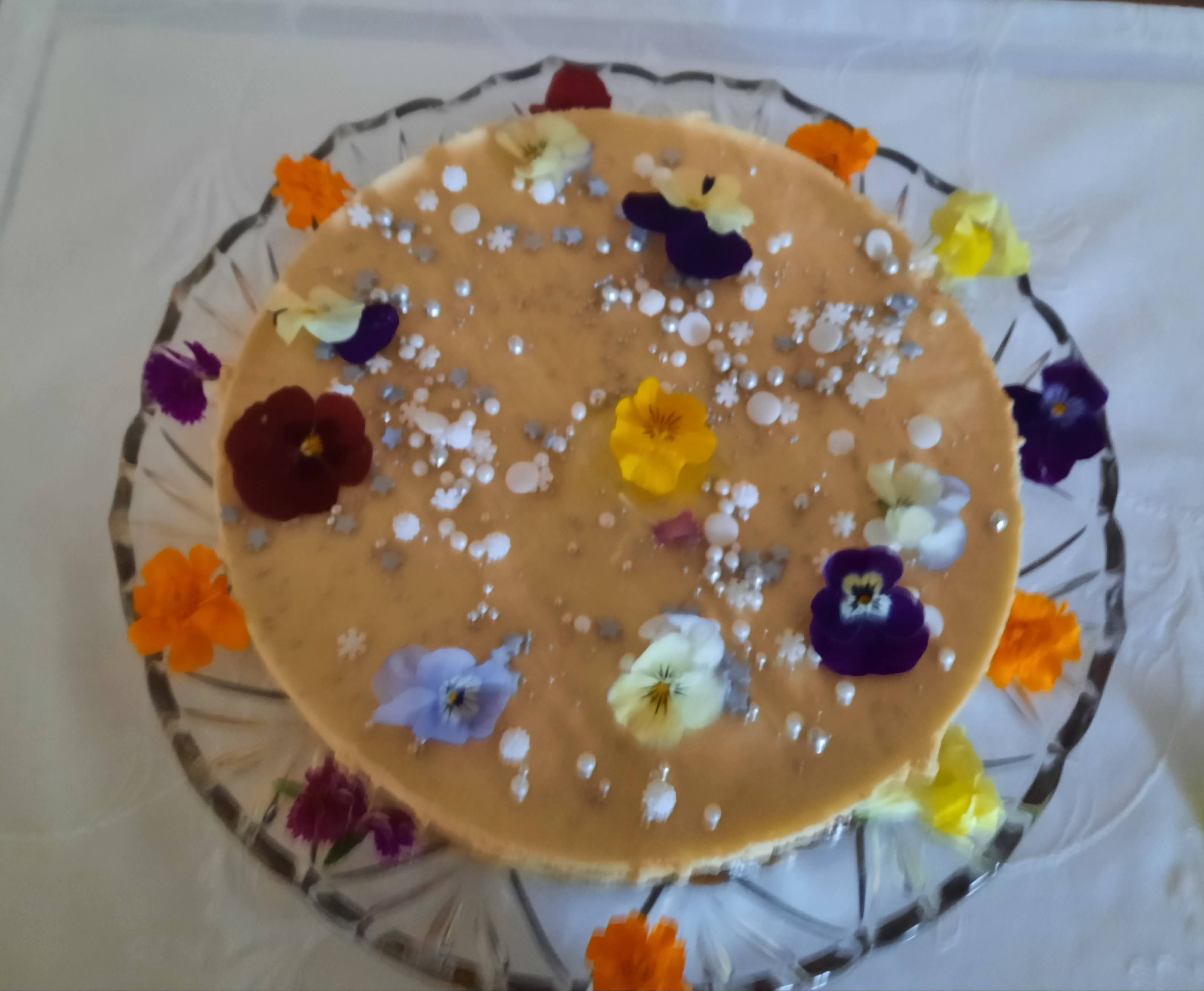 Tarta con flores comestibles decorando