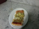 - Ësta es la tradicional, pero se puede hacer con cebolla estofada, con «escalibada», con calabacín, ésta es la que yo he hecho hoy